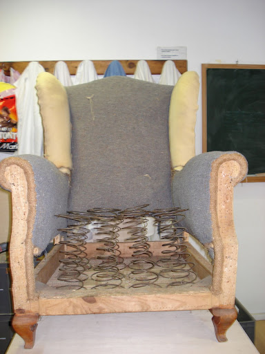 La faena digna de elogio era guarnecer los asientos tanto de sofás como de sillas, así se tapizaba en tiempos de maricastaña cuando no existía la gomaespuma ni el burlete para perfilar las formas. Se trataba de, generalmente, cinchar con cincheta de yute, coser los muelles y atarlos entre sí para hacer un cuerpo elástico. El día que vaya bien de tiempo y de ganas ( y caiga en mis manos alguna restauración), explicaré paso a paso y personalmente, como es un verdadero trabajo artesanal que hoy en día está en desuso total gracias a las rampas de goma prensada. A estas alturas de tecnicismos industriales, quedan pocos que dominen la técnica ya que se quedó obsoleta cuando yo era un tierno aprendiz y de esto hace más (agárrate) de veinticinco años: "Qué jodidamente mayor me estoy haciendo" , me ha dicho el sabio subconsciente.